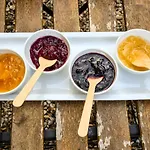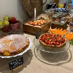 Casale Caterina Agriresort hotel offers an Italian breakfast which includes fresh pastries, fresh fruits, and pancakes.